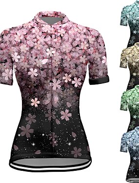 Femmes Maillot de cyclisme Motif Floral Manche Courte Cyclisme Top avec 3 poches arrière VTT Vélo tout terrain Cyclisme sur route Séchage Rapide Bandes réfléchissantes Poche Arrière Évacuation de