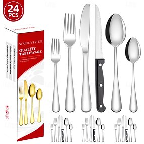 Coffret cadeau de 24 couverts de Noël en acier inoxydable (couteau, fourchette, cuillère) style western, idéal pour les fêtes de fin d'année.