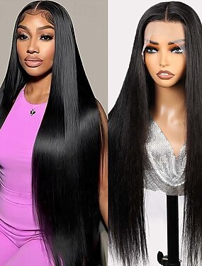 Perruque lace front 13*6, cheveux lisses, densité 150 %, 35 à 65 cm (14 à 26 pouces) pour femmes noires
