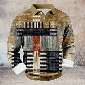 Homme Bloc de Couleur Géométrique Polo Chemises Themmal manche longue Polos Revers Occasionnel Athleisure Fête Tenue quotidienne Impression 3D Printemps Automne Hiver Bleu Marron Gris
