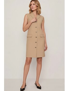 Femmes Robe smoking Gaine Affaires Bureau Travail Tissu Extensible Élégant Simple Sans manches Au-dessus du genou Col à Revers Simple Boutonnage