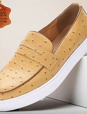 Mocassins en cuir véritable jaune à motif d'autruche pour hommes avec semelle intérieure souple et semelle en caoutchouc antidérapante, chaussures décontractées de luxe à enfiler pour le travail et le week-end