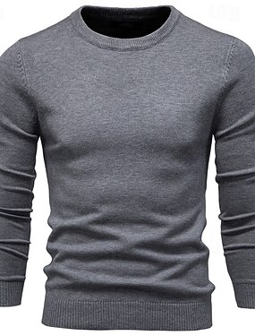 Homme Pull Côtelé Tricoter Hauts Réguliers Tricoté Coupe ajustée Uni Col ras du cou Tricots Contemporain Occasionnel Tenue quotidienne Vêtement Tenue Automne & Hiver Gris S M L