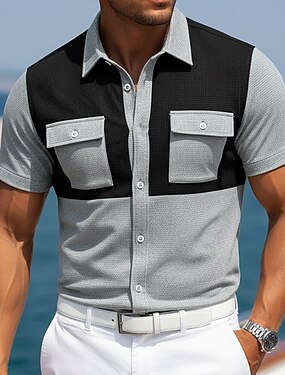 Homme Chemise gaufrée Tee-shirt Col V Chemise à manches courtes T-shirt Manche Courte Col en V Henley Été Couleur Unie Quotidien Occasionnel Patchwork Boutons Faux deux pièces Extérieur Rue