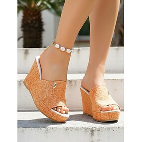 Sandales compensées en daim jaune moutarde pour femmes - sandales à plateforme avec semelle texturée en liège, idéales pour les vacances en plein air et les voyages d'été. &vêtements de plage