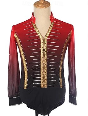 Haut de Patinage Artistique Homme Garçons Patinage Hauts Noir Patchwork Spandex Haute Élasticité Entraînement Professionnel Compétition Tenue de Patinage Classique cristal pailleté manche longue