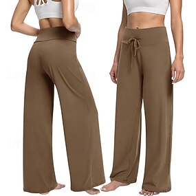 Femmes Pantalon de yoga Pantalons décontractés in in france they say Pontalon wide leg Contrôle du ventre Taille haute Salle de sport Entraînement Athlétique Bas Couleur Unie Noir Bleu de minuit