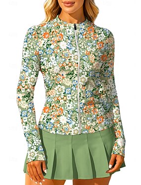 Femmes Plantes Floral Motif Floral Hauts T-shirt de sport Chemise de tennis Haut de tennis manche longue Fermeture éclair Floral UPF50+ Résistant aux UV Haute élasticité Évacuation de l'Humidit