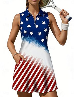 Jour de l'Indépendance 250e anniversaire de l'Amérique Femmes Graphique Drapeau national tenue de sport Robe polo de tennis Sans manches Quart de zip Élastique Évacuation de la transpiration Respirant