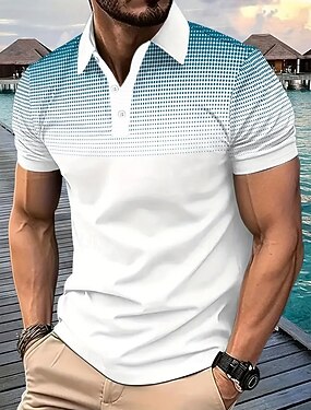 Homme Pois Géométrique Polo Manche Courte Polos Chemises à Col Occasionnel École Extérieur Athleisure Tenue quotidienne Impression 3D Été Bleu Clair-Blanc