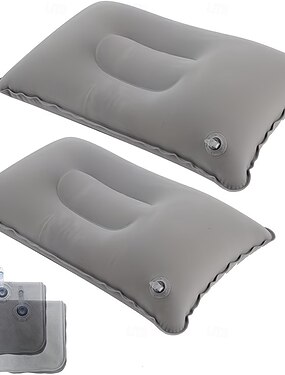 Lot de 2 oreillers de voyage gonflables ultra-légers format A4, petits oreillers carrés en tissu floqué, faciles à ranger, parfaits pour le camping, les siestes au bureau, les voyages, la randonnée et