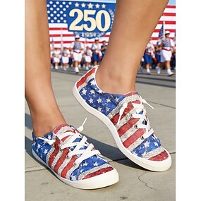 Baskets imprimé drapeau USA pour femmes - Chaussures décontractées classiques à lacets en toile avec semelle rembourrée pour un style patriotique parades festivals marche et usage quotidien