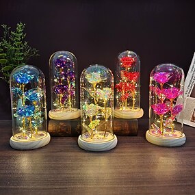 Rose en Verre Éternelle Fleur Cristal Roses Éclairées en Dôme de Verre Cadeaux pour Femmes Maman Grand-Mère Épouse Sa Sœur