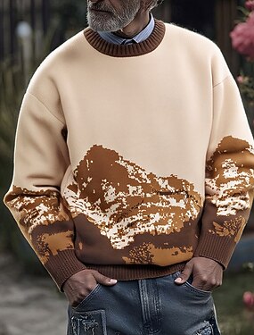 Homme Sweat-shirt Bleu Marron Col ras du cou Paysage Impressions Graphiques Imprimé Texture tricotée Sport & Loisir Quotidien Fête Polyester Streetwear Basique Occasionnel Automne Hiver Vêtement Tenue