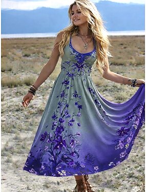 Femmes Robe maxi Robe Décontractée Robe évasée Robe d'été Robe bohème ancien Plage Coupe régulière Graphique Paisley Sans manches Col ras du cou Bleu Violet Orange Vert Été Printemps