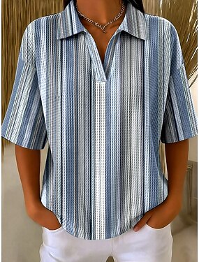Femmes Tee-shirt Gaufre Tops tricotés texturés Rayé Graphique Géométrique Élégant ancien Classique Demi Manches Col Polo Hauts Réguliers Occasionnel Quotidien Bleu Blanche Violet Été Printemps
