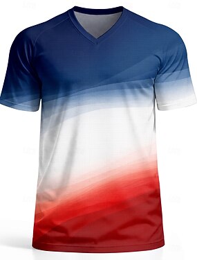 Maillot de football homme bleu, blanc et rouge, imprimé graphique abstrait dégradé, inspiration française, respirant, protection UVF50+