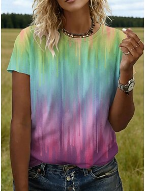 Femmes T-shirt Imprimé Graphique Élégant Classique Occasionnel Manche Courte Col ras du cou Hauts Réguliers Quotidien Sports Sortir Bleu Violet Été Printemps