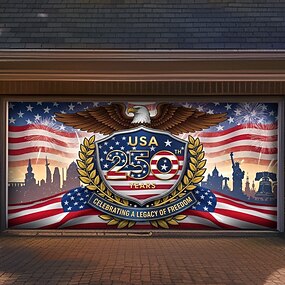 4 juillet 2026 250e Jour du Souvenir Anniversaire 250 Ans de Liberté Aigle Pêcheur Feux d'Artifice Drapeau Américain Bannières de Porte de Garage Décor Patriotique Extérieur Maison Décor Fête de