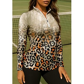 Femmes Léopard Dégradé Chemise T-shirt de sport T-shirt POLO Chemise de tennis manche longue Fermeture éclair Floral UPF50+ Résistant aux UV Haute élasticité Évacuation de l'Humidité Respirant Tennis