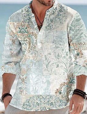 Homme Paisley Imprimé Floral Fleurs Chemise Chemise Boutonnée Chemise Henley manche longue Ethnique Vintage Rétro Occasionnel Vacances Été Printemps Col mandarin Col montant Impression 3D Chemise en