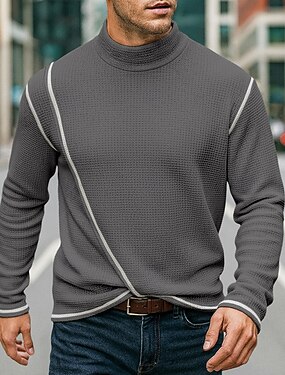 Homme Chemise gaufrée Chemise à col roulé T-shirt Chemise à Manches Longues manche longue Col roulé Col haut Automne Printemps & Automne Uni Mode Designer Basique Portefeuille Crossover Vacances Rue