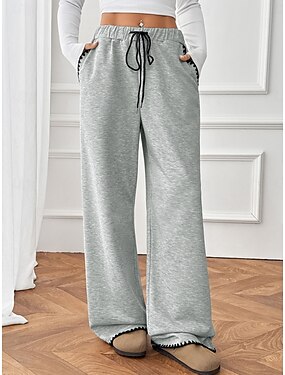 Femmes Joggings Jambe large Chinos Vacances Mode Streetwear Longueur complète Taille haute Uni Avec Poches Ceinture Élastique Confortable Confort Doux Élastique Quotidien Extérieur Rue Gris Printemps