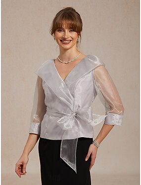 Femmes Hauts Élégants Froncé Manches Transparentes Couleur Unie Élégant Manche 3/4 Col en V Hauts Réguliers robe demoiselle d honneur Tenue de cocktail Gris Clair Été Printemps Automne