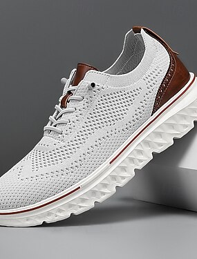 Baskets montantes blanches et marron en maille pour homme, chaussures décontractées basses et souples, confortables et respirantes pour un usage quotidien, les voyages et les sorties du week-end.