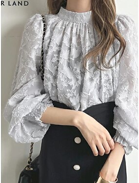 Femmes Chemise Chemisier Hauts en mousseline de soie Froncé Dentelle Fleuri Actif Élégant manche longue Col haut Hauts Réguliers Quotidien Plage Fête Noir Rose Claire Bleu Ciel Gris Clair Abricot Ét