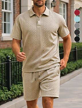 Homme Polo Occasionnel Rue Revers Manche Courte Basique Moderne Uni Texturé Boutons Refroidissement Été Printemps Coupe régulière Noir Kaki Gris Claire Gris foncé Vert Véronèse Bleu clair Polo