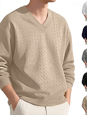 Homme T-shirt Chemise à Manches Longues manche longue Col en V Printemps Automne Couleur Unie Mode Streetwear Occasionnel Jacquard Extérieur Vacances Rue Noir Blanche bleu marine T-shirt haut de