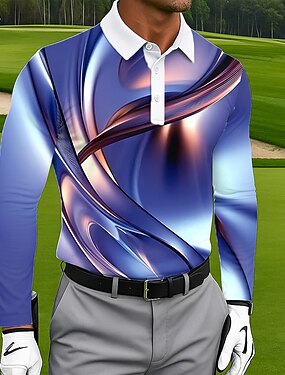 Homme Géométrique Ligne Polo manche longue Polos Revers Occasionnel Extérieur Rue Athleisure Tenue quotidienne Impression 3D Boutons Printemps Automne Hiver Bleu Violet Vert