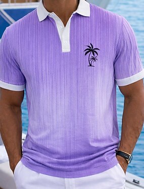 Homme Palmier Polos Hawaïens Manche Courte Polos Chemises à Col Occasionnel Athleisure Tenue quotidienne Vêtements de vacances Impression 3D Boutons Maille Respirante Printemps & Été Bleu Violet Vert