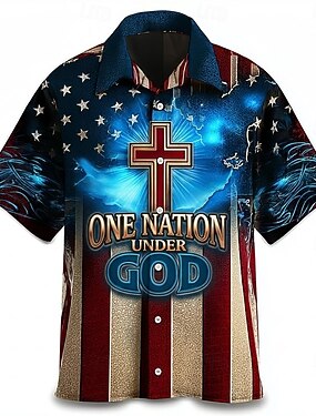 Homme Drapeau Américain Croisés Croix Chemise Chemise Boutonnée Chemise à col camp Manche Courte Vintage Rétro Vêtements de rue Vacances Été Printemps Col cubain Impression 3D Bleu Violet Gris