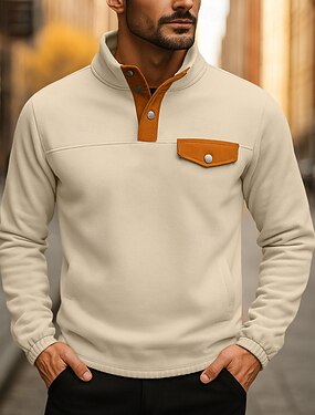 Homme Sweat-shirt Sweat à capuche Pull Sweat à capuche boutonné Noir Blanche Beige Gris Col montant Uni Patchwork Sport & Loisir Occasionnel Quotidien Streetwear Frais Vêtements de sport Printemps