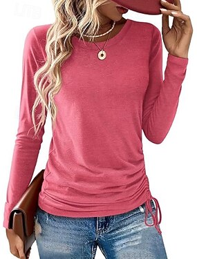 Femmes Chemisier Cordon de serrage Couleur Unie Quotidien Élégant Occasionnel manche longue Col ras du cou Hauts Longs Quotidien Noir Vin bleu marine Fuchsia Gris Printemps Automne