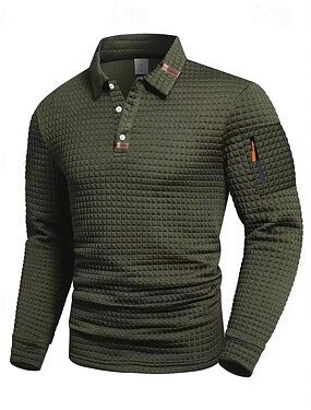 Homme Chemises Polo Gaufre Polo Rue Occasionnel Revers manche longue Basique Moderne Uni Boutons Printemps Automne Toutes saisons Coupe régulière Gris Noir Blanche bleu marine Vert militaire Chemises