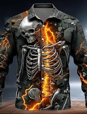 Homme Crâne Éclair Roche de lave fissurée Chemise Chemise Boutonnée manche longue Style gothique sombre Extérieur Fête Été Printemps Col Rabattu Impression 3D chemises à col Gris foncé Gris