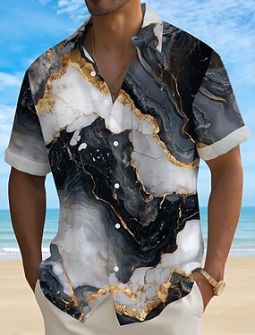 Homme Marbre Art liquide abstrait Chemise Chemise d'été Chemise Boutonnée Manche Courte Mode Décontractée Extérieur Vacances Tenue Quotidienne Été Printemps Col Rabattu Impression 3D chemises à col
