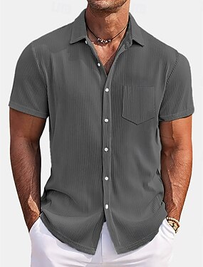 Homme Chemise Texture Chemise de travail Chemise jacquard Marron Sapin Noir Blanche Rose Claire Vin Manche Courte Uni Revers Quotidien Vacances Avec Poches Vêtement Tenue Streetwear Occasionnel