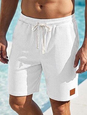 Homme Short gaufré Shorts Shorts d'été Short décontracté Avec Poches Taille Élastique Cordon de serrage Uni Confort Respirant Court Extérieur Vacances Sport Occasionnel Noir Blanche
