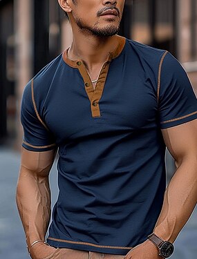 Homme Drôle T-shirt Chemise Henley Manche Courte Designer Rétro Vintage Henley Occasionnel Quotidien Rue Été Printemps Vert bleu marine gris foncé Henley T-shirt Henley