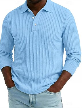 Homme Haut en Tricot Côtelé Texturé Occasionnel Rue Revers manche longue Basique Moderne Uni Boutons Printemps Automne Toutes saisons Coupe régulière Bleu Blanche bleu marine Gris Haut en Tricot