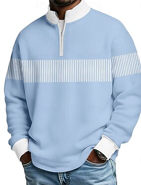 Homme Bloc de Couleur Polos à zip manche longue Polos Col grand-père Occasionnel École Athleisure Fête Tenue quotidienne Impression 3D Polo à fermeture éclair 1/4 Automne & Hiver Printemps Bleu bleu