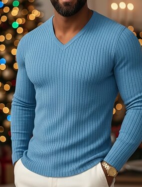Homme T-shirt Débardeur Musclé T-shirt en tricot côtelé Chemise à Manches Longues manche longue Col en V Printemps Automne Hiver Uni Bande de Fosse Mode Designer Basique Tricot Occasionnel Vacances