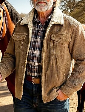 Homme Veste d'hiver Veste en Velours Côtelé Veste en Polaire Veste Décontractée Vacances Quotidien Chaleur Thermique Avec Poches Toison Automne Hiver Uni Mode Streetwear Revers Régulier Noir Kaki