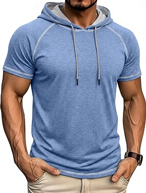 Homme T-shirt Chemise à manches courtes Manche Courte À capuche Été Uni Streetwear Élégant Loisir À capuche Manche raglan Occasionnel Quotidien Extérieur Bleu Gris foncé Noir T-shirt haut de gamme