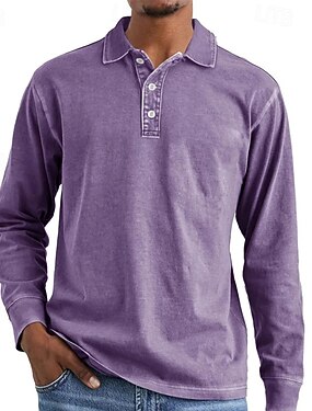 Homme T-shirt Chemise Henley Chemise 100% coton délavée à l'acide manche longue Uni ancien Streetwear Occasionnel Lavé Manche raglan Col montant Henley Occasionnel Maison Rue Printemps Automne