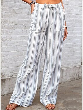 Femmes Jambe large Chinos Vacances Mode Streetwear Longueur complète Taille haute Rayé Avec Poches Ceinture Élastique Confortable Confort Doux Élastique Extérieur Rue Rose Vert Bleu ciel Gris Ét